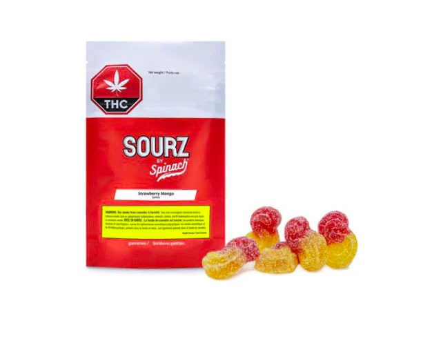 What happens when you mix luscious strawberry and tropical mango flavours? You get a thundering burst of flavour with Strawberry Mango SOURZ by Spinach. This dual-flavoured soft chew blasted with sour crystals is over the top with only natural flavours and colours. With five big S chews per pack, you and your friends can enjoy more SOURZ by Spinach in one sitting with 10mg THC total per pack.